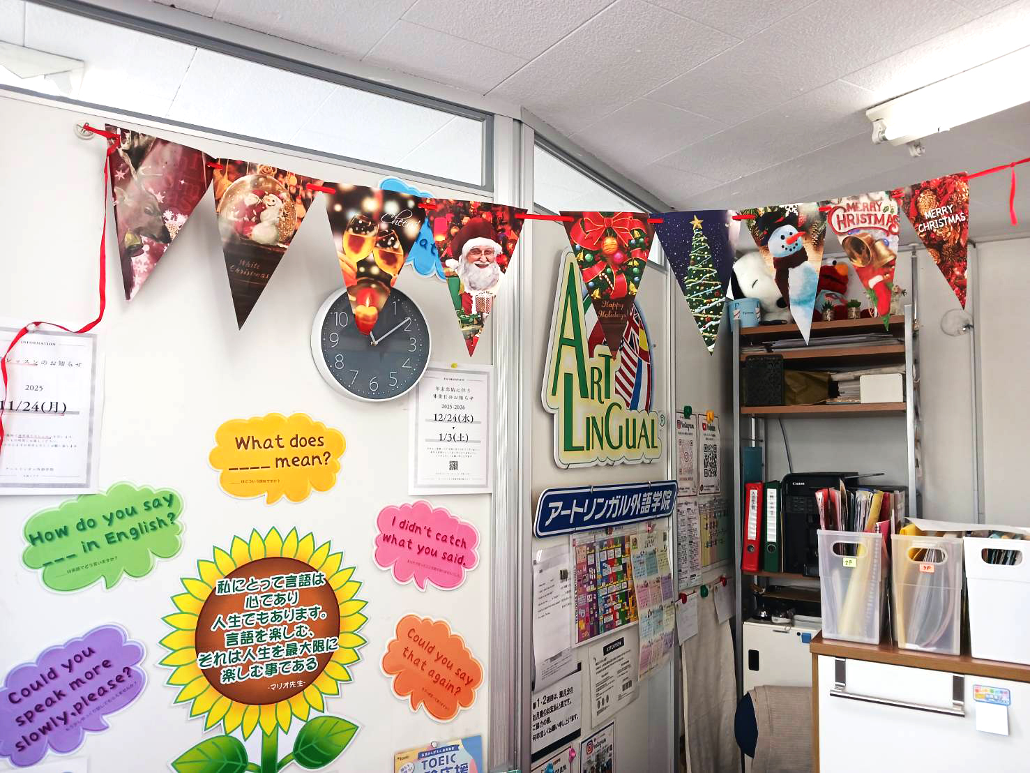 アートリンガルでは、今年も各校が工夫を凝らしたオリジナルのデコレーションで、クリスマスを盛り上げています。